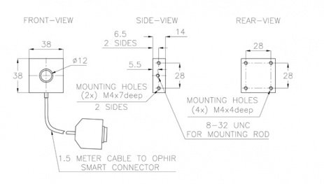 20C-BB-12-SH是一款緊湊型熱功率/能量激光測量傳感器,尺寸僅為38x38x14mm。具有12mm孔徑,獨立使用時的功率測量范圍為10mW - 4W,配合散熱器使用時的功率測量范圍高至20W。其能量測量范圍是6mJ~10J。其具有頻譜平坦的寬帶涂層,頻譜覆蓋范圍為0.19~11μm。