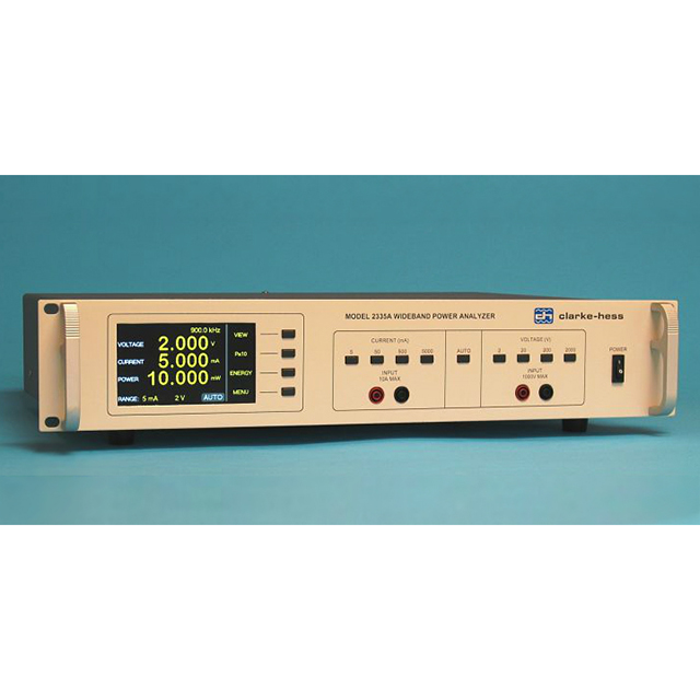 2335A型寬帶功率分析儀是一款精密、高精度、高頻自動測距功率分析儀,可在直流至1MHz以上的頻率范圍內測量和顯示真實均方根電壓、真實均方根電流和真實平均功率。滿量程電流和電壓輸入通常在振幅讀數的±0.1%范圍內測量,至少為500kHz。對于具有任何功率因數的負載,相應的功率通常測量在輸入伏安至250kHz的±0.1%范圍內,以及輸入伏安至500kHz的±0.2%范圍內。