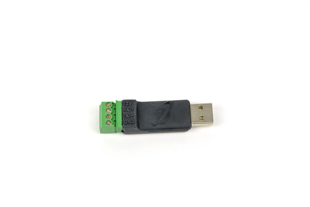 AC-422的一側有一個USB接口,可以插到電腦上。AC-422的另一側有+12 V輸出,GND和Modbus數據通道,用于連接任何標準Modbus傳感器(為了正確操作,請先連接地線)。