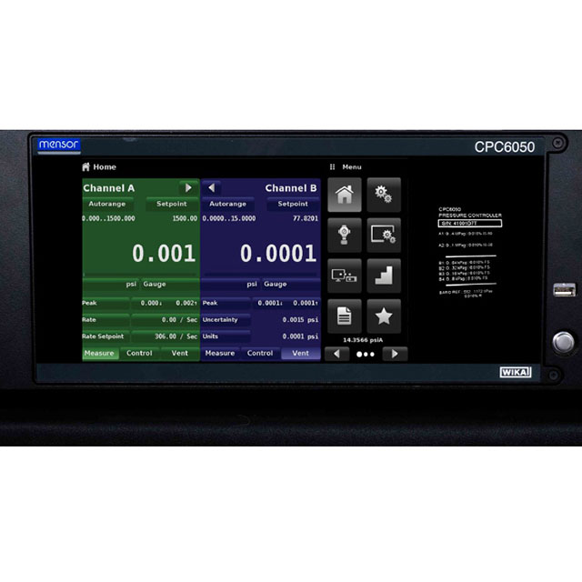 高度可配置的壓力控制器型號 CPC6050 模塊化壓力控制器提供很大的靈活性更好地滿足客戶的要求。壓力控制器至多可以有兩個獨立的壓力調節通道,可以同時運行。每個通道至多可以有兩個傳感器。該儀器還可以有一個可選的氣壓參考,用于表壓或絕對壓力仿真。該儀器可以指定為臺式或 19" 機架安裝套件。