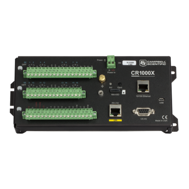 CR1000X是一款低功率的設備,用于傳感器測量、直接/遠程通訊連接、數據分析、外部設備控制、數據和程序的存儲,采用密封裝置屏蔽射頻干擾,金屬不銹鋼外殼。精密時鐘,支持Campbell Scientific 數據采集器通用的類BASIC編程語言—具備數據處理和分析功能。CR1000X 接線面板上有兩個開關12 V 端子, 16 個模擬測量端子,端子可拆卸。