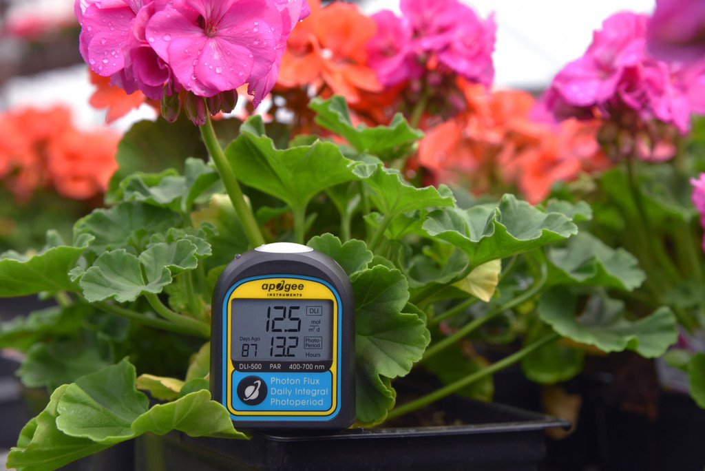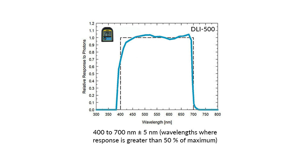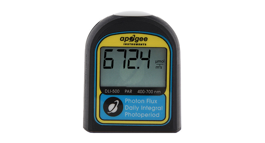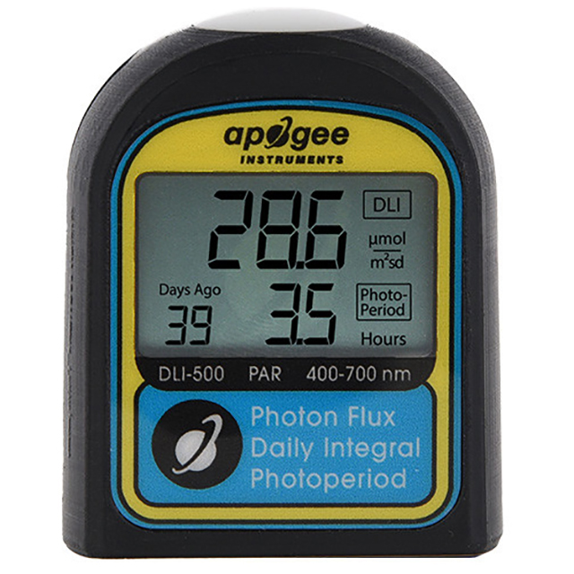 DLI-500 全光譜儀是2022 年的新產品,是一款優雅、易于使用的設備,用于抽查光合有效輻射(PAR;400-700 nm)水平并測量每日光積分( DLI) 和所有光源下的光周期,且在所有光源下都準確。DLI是指24小時內入射在一個平面上的PAR或擴展PAR(ePAR)的總量,單位為每天每平方米的摩爾數。光周期是 24 小時內 PAR 或 ePAR 入射的總時間,以小時 (h) 為單位表示。PAR、DLI 和光周期影響植物的生長和發育,通常在溫室和生長室中測量它們以幫助進行光照管理和決策。