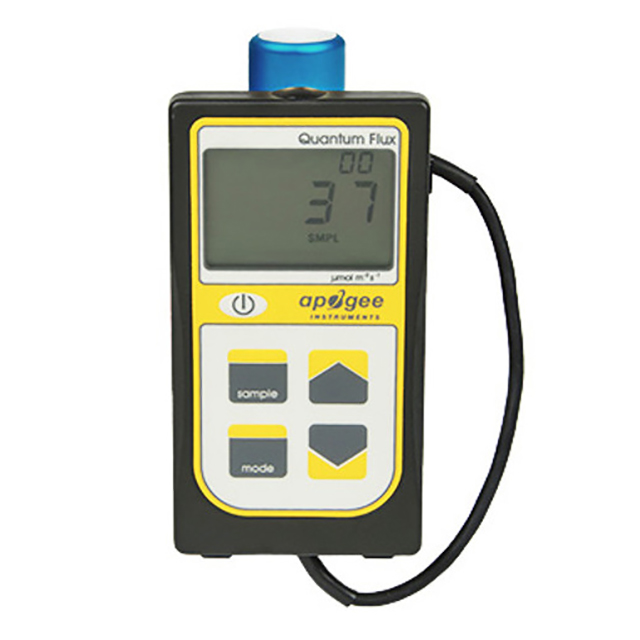該儀表具有采樣和日志模式,并將記錄以 mol mˉ2 dˉ1為單位的綜合每日總量。采樣模式將記錄多達 99 個手動測量值。日志模式將打開/關閉儀表,每 30 秒進行一次測量。每 30 分鐘,儀表將對 60 個 30 秒的測量值進行平均,并將平均值記錄到內存中。儀表最多可存儲 99 個平均值,一旦存滿,它將開始用新的測量值覆蓋舊的測量值。將從 48 次平均測量(以 24 小時為周期)記錄綜合的每日總數。可以在 LCD 顯示屏上或通過將數據下載到計算機來查看樣本和日志測量值,但是,只能通過將數據下載到計算機來查看綜合的每日總量。將數據下載到計算機 需要AC-100 通信電纜(標準 USB 電纜不起作用)和ApogeeAMS 軟件。