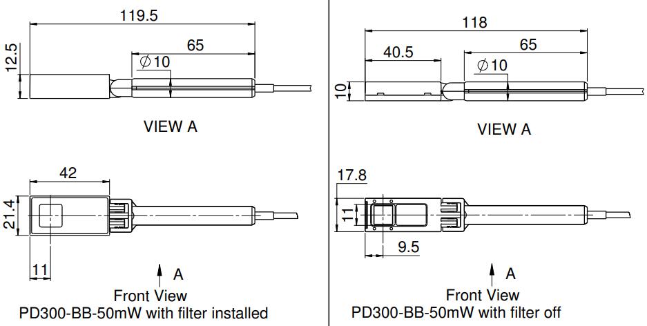 PD300-BB-50mW 輻射傳感器具有平坦光譜響應(yīng)光電二極管傳感器,用于測量寬帶光源。它涵蓋 430 - 1000nm 的光譜范圍,具有 10x10mm 的孔徑,帶旋轉(zhuǎn)支架和可拆卸濾光片。不帶濾波器時(shí),其功率測量范圍為 50pW – 4mW。使用濾波器時(shí),功率范圍為 1nW - 50mW。該傳感器帶有一根 1.5 米長的電纜,用于連接到儀表或 PC 接口。