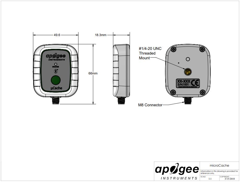 新的 SQ-610 ePAR用于測量新定義的 400-750 nm ePAR 輻射范圍,研究表明該范圍具有越出傳統 400-700 nm 范圍的光合活性。新的 AT-100 microCache (μCache) 微型記錄器是一款堅固耐用的獨立電池供電設備,可以收集超過 400,000 個數據點,并使用我們免費的 ApogeeConnect 應用程序通過藍牙將您的傳感器連接到您的 iOS 或 Android 設備。該應用程序允許您進行實時測量、設置自定義數據記錄間隔、監控日光積分并繪制圖表、確保光周期、下載數據集等。