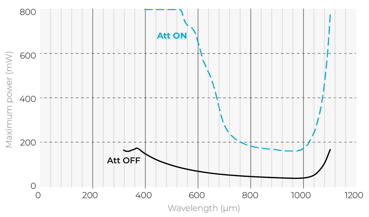 1. 532 nm,附有衰減器。查看其他波長的最大功率曲線。 2. 查看用戶手冊,了解使用衰減器校準的不確定性。 |