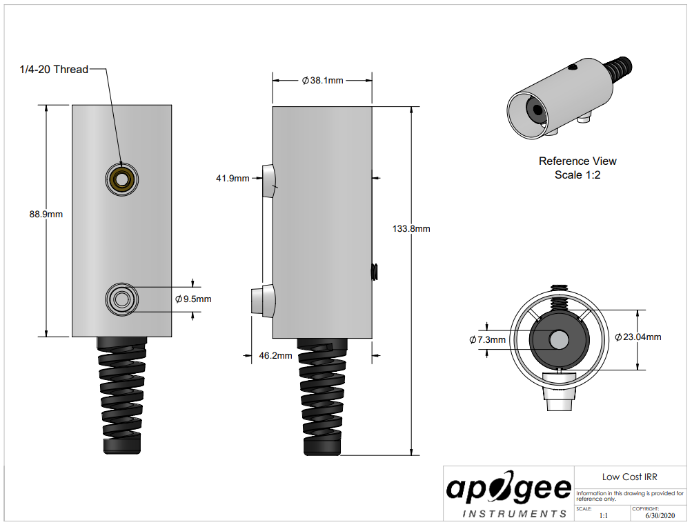 SIL-411具有SDI-12數字輸出和5米高質量電纜,端接在預鍍錫尾纖引線中,便于連接到數據記錄器和控制器。該傳感器具有22°半角度視場,響應時間為0.6秒。典型的應用包括用于植物水分狀況估計的植物冠層溫度測量、用于確定結冰條件的路面溫度測量以及用于能量平衡研究的地表(土壤、植被、水、雪)溫度測量。