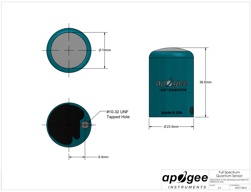 SQ-500 是一款自供電模擬全光譜量子傳感器,輸出范圍為 0 至 40 mV。該傳感器采用增強型硅光電二極管和定制濾光片,具有堅固的自清潔傳感器外殼設計、帶丙烯酸漫射器的陽極氧化鋁主體,以及距離傳感器頭 30 厘米的內聯電纜連接器,可作為長電纜標準使用尾纖傳感器,或與我們的microCache 藍牙微型記錄器一起使用通過擰下連接器,丟棄較長的電纜部分,然后將傳感器擰到 microCache 上的匹配連接器上。典型應用包括室外環境、溫室和生長室中植物冠層的 PPFD 測量,以及相同環境中的反射或冠層下(透射)PPFD 測量。量子傳感器還用于測量水生環境中的 PAR/PPFD,包括生長珊瑚的鹽水水族館。傳感器包括距離頭部 30 厘米的 IP68 防水的不銹鋼電纜連接器,以簡化傳感器拆卸和更換以進行維護和重新校準。