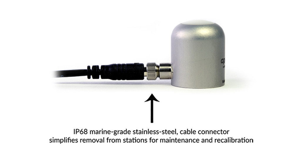 該傳感器的模擬版本(SQ-610)帶有內嵌電纜連接器,距離傳感器頭30厘米,可作為標準使用的長電纜辮子傳感器,或與我們的microCache藍牙Micro Logger一起使用,方法是擰下連接器,丟棄長段電纜,然后將傳感器擰到microCache上的匹配連接器。