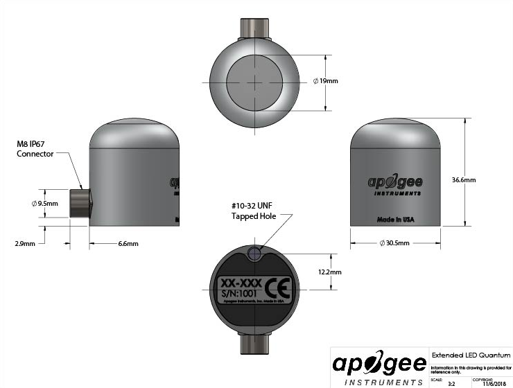 該傳感器的模擬版本 (SQ-640) 帶有內聯電纜連接器,距離傳感器頭 30 厘米,可作為長電纜尾纖傳感器標準使用,或通過擰下連接器與我們的 microCache 藍牙微型記錄器一起使用,丟棄較長的電纜,然后將傳感器擰到 microCache 上的配合連接器上。