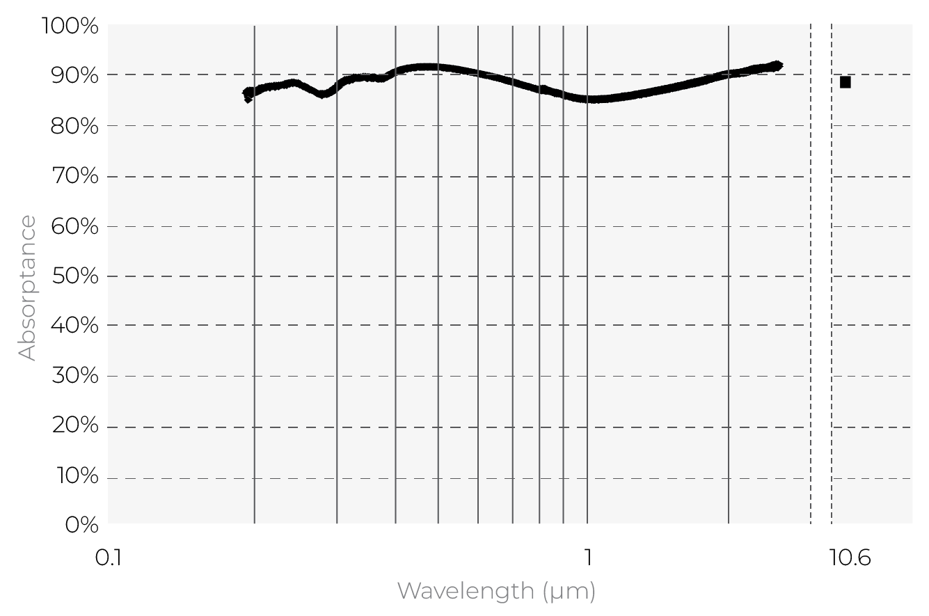 我們的 H 型吸收器具有寬帶和光譜平坦的光譜響應,因此該功率檢測器是一種多功能解決方案,可滿足大多數激光功率測量需求。我們的制造方法還使這種吸收器在平均功率密度和能量密度方面具有良好的損壞閾值。它的吸收能力很強,因此產生的背部反射比例相對較低。