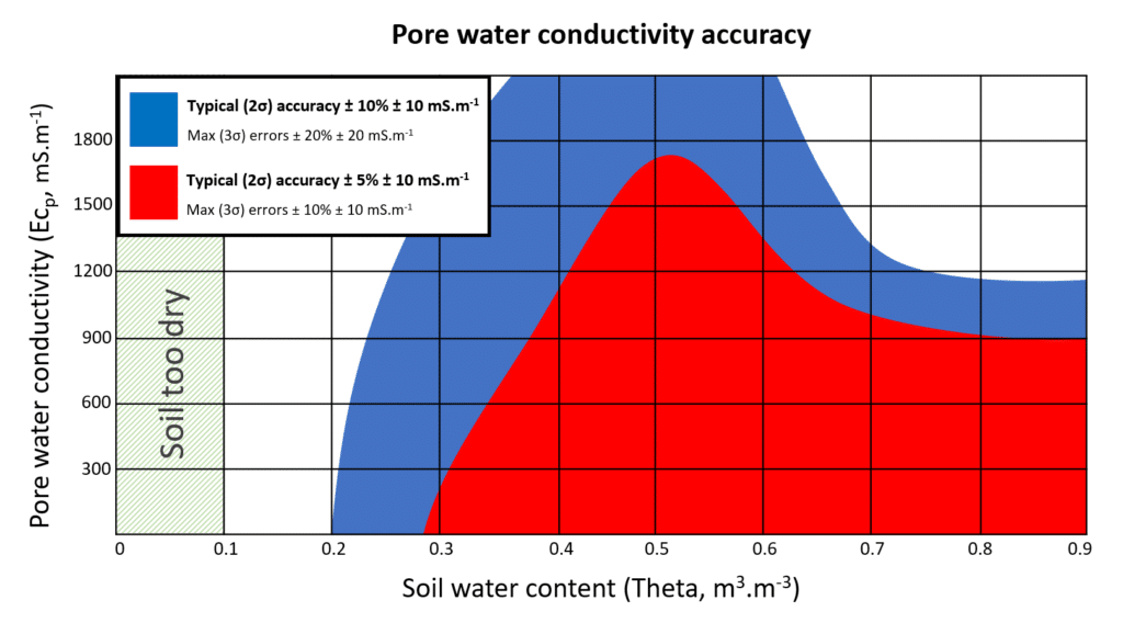 WET150 的一個關鍵優勢是它能夠可靠地計算孔隙水電導率 (ECp),即植物可用水中的離子含量。