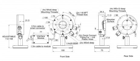 The 1000W-BB-34 is a water cooled thermal power/energy laser measurement sensor with a 34mm aperture. It can measure power from 5W to 1000W and energy from 300mJ to 300J. It has the spectrally flat broadband coating and covers the spectral range from 0.19 to 20μm. The sensor comes with a standard 1.5 meter cable for connecting to a meter or PC interface.