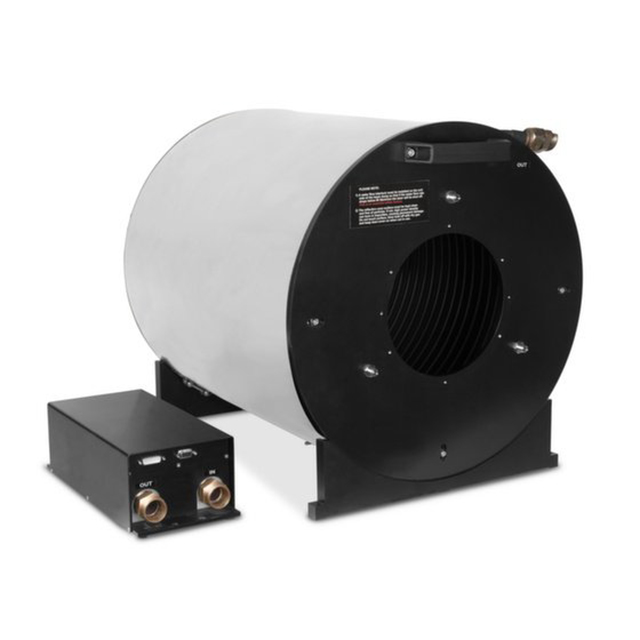 The 120K-W is a water cooled thermal power/energy laser measurement sensor for very high powers with a 200mm aperture. It has dimensions 520 x 545 x 750mm. The 120k-W laser power meter can measure power from 10,000W to 120,000W and is designed for a beam expanded to 100mm diameter to hit its deflecting cone and is calibrated at 1.07μm. Applications include laser weapon measurements and laser measurement for semiconductor lithography processes. The sensor comes with a 10 meter cable for connecting to a meter or PC interface