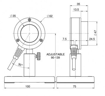 The PE50BF-DIF-C is a pyroelectric energy meter with a diffuser for concentrated beams. It has a 35mm aperture and can measure energies from 200μJ up to 10J. It can operate at repetition rates up to 250Hz and covers the spectral range from 0.19 - 2.2, 2.94μm. The sensor comes with a standard 1.5 meter cable for connecting to a meter or PC interface.