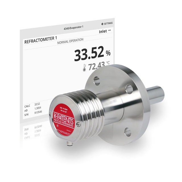 Vaisala K?PATENTS®The versatile online refractometer PR-43-G is ideal for measuring liquid concentration and density in a wide range of industrial applications due to its durability and versatility. It enables highly accurate measurements in demanding process control applications and is unaffected by undissolved solids and air bubbles.