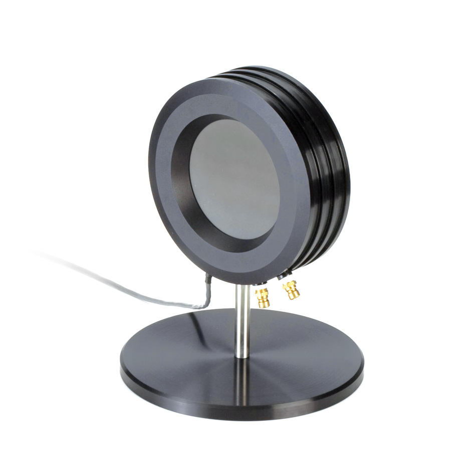 Large area, water-cooled kW thermopile sensor with UV coating for measuring lasers between 50W and 1000W. Direct RS232 interface.