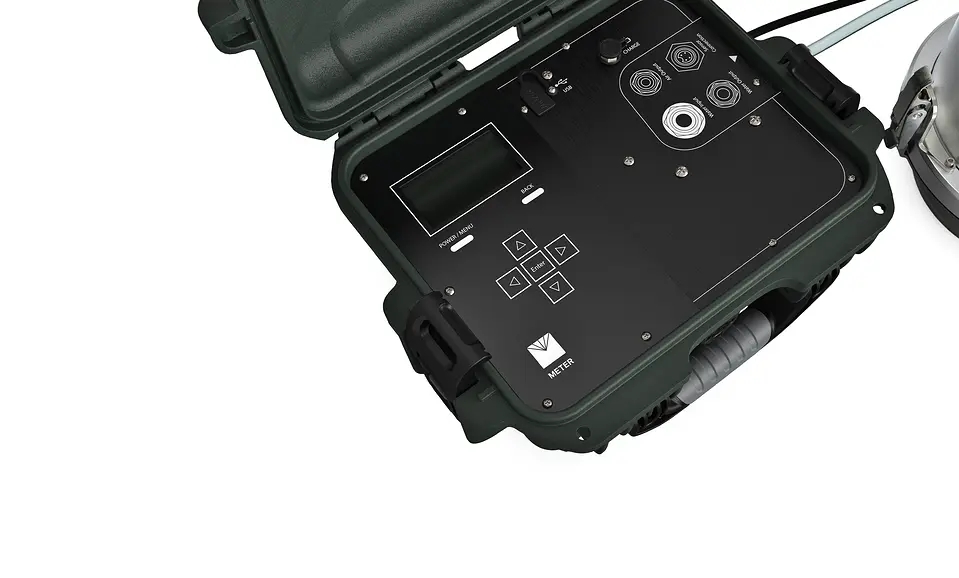 | KFS | The range of Kfs values that can be effectively measured by the SATURO infiltrometer are limited by the minimum and maximum infiltration rates listed above. These depend on the pressure heads applied to the water during infiltration and to the three-dimensional flow characteristics of the soil, so the measurement range of Kfs cannot be specified explicitly. SATURO will generally be able to make measurements on poorly to moderately structured soils as coarse as medium sand, but the maximum infiltration rate can be exceeded by soils with excessive structure and especially by soils with significant macropores. | |
