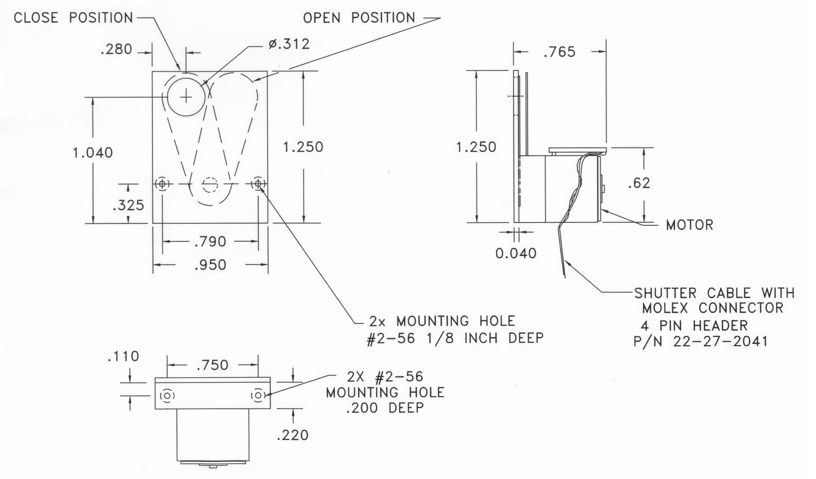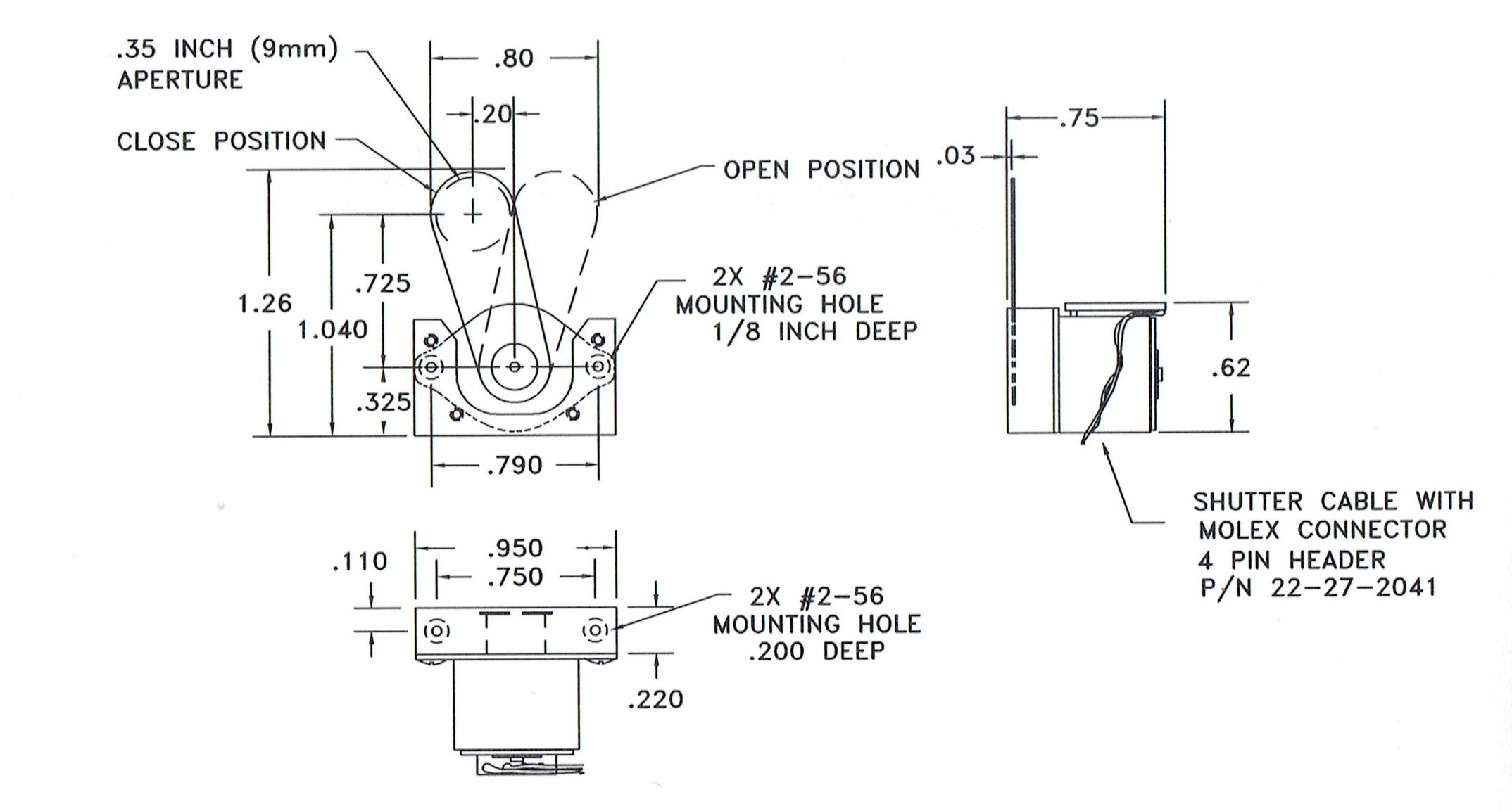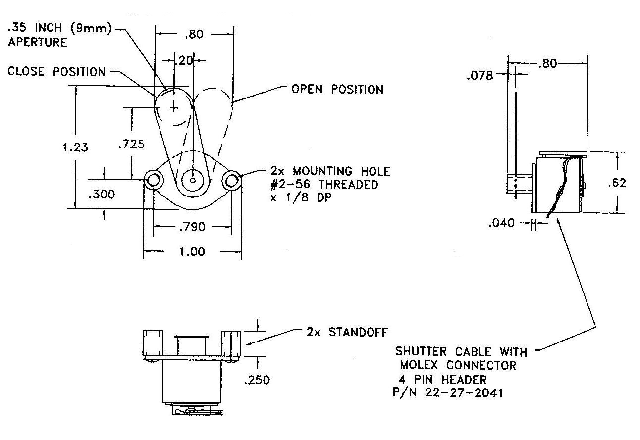 | SH-35-S | Shutter is mounted with #2-56 threaded standoffs. |