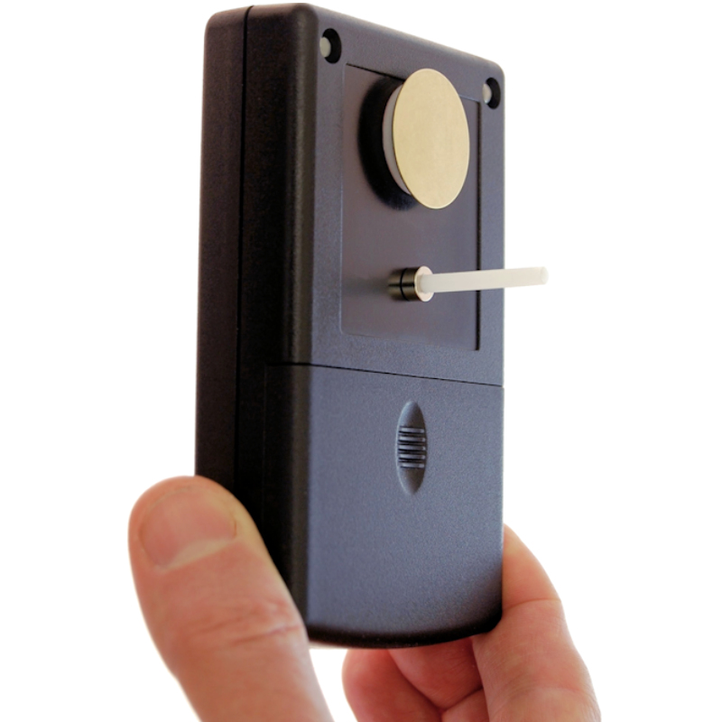 The SVM2 is a handheld static electricity meter used to measure the magnitude and polarity of static charge on objects or surfaces. It is typically held 1” (25 mm) from the test surface. On metallic or conductive surface, the meter measures the voltage on the surface. (As with any electrostatic voltmeter, the displayed reading depends somewhat on the size of the object being measured and the distance between the object and the sensor.) On insulating surfaces, “voltage” is not a well-defined number. In this case, the meter reads a number proportional to the static charge present.