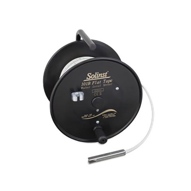 Solinst 101B Water Level Meters feature a basic design, making them a very economical option for depth to water level measurements. The 101B uses polyethylene flat tape, heat embossed in centimeter increments. Tape lengths available are 30 m, 60 m, and 100m. The robust stainless steel P1 Probe is ?" (12.7 mm) in diameter.