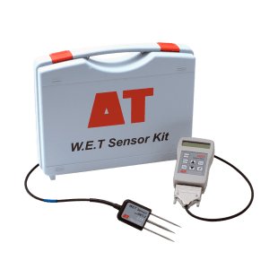 If the WET Sensor is purchased with an HH2 Moisture Meter (as part of the WET Kit) it will be equipped with calibrations for generic mineral soils, organic soils, sand soils, clay soils, coir (coco fibre), peat based potting mixes, greenhouse ‘mineral’ soils, and Stonewool artificial mineral wool substrate (vertical and horizontal measurement).